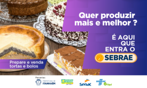 Desenvolvimento Econômico e Relações do Trabalho SEBRAE está com inscrições abertas para curso “Prepare e Venda Bolos e Tortas” 7 de janeiro de 2026